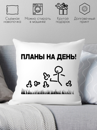 ИнформацияПодушка сувенирная с печатью. Хороший и недорогой подарок на любой праздник. Будь то день святого валентина, день рождения, 8 марта или 23 февраля. Размер 40х40 см, наполнитель холлофайбер. Наволочка съемная на молнии — можно стирать в стиральной машине при температуре не превышающей 40 градусов. Печать термотрансферная. Печать не стирается.