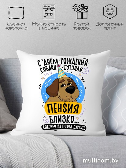 | Информация | Подушка сувенирная с печатью. Хороший и недорогой подарок на любой праздник. Будь то день святого валентина, день рождения, 8 марта или 23 февраля. Размер 40х40 см, наполнитель холлофайбер. Наволочка съемная на молнии — можно стирать в стиральной машине при температуре не превышающей 40 градусов. Печать термотрансферная. Печать не стирается. |