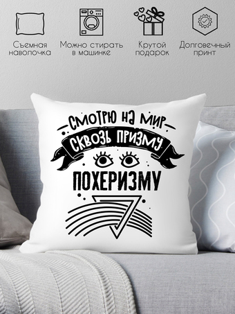 Декоративная подушка Print Style Смотрю на мир сквозь призму - пофигизму 40x40plat249