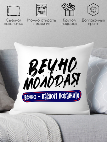 | Информация | Подушка сувенирная с печатью. Хороший и недорогой подарок на любой праздник. Будь то день святого валентина, день рождения, 8 марта или 23 февраля. Размер 40х40 см, наполнитель холлофайбер. Наволочка съемная на молнии — можно стирать в стиральной машине при температуре не превышающей 40 градусов. Печать термотрансферная. Печать не стирается. |