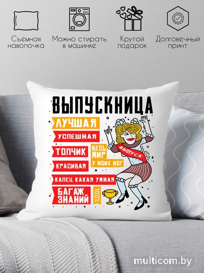 | Информация | Подушка сувенирная с печатью. Хороший и недорогой подарок на любой праздник. Будь то день святого валентина, день рождения, 8 марта или 23 февраля. Размер 40х40 см, наполнитель холлофайбер. Наволочка съемная на молнии — можно стирать в стиральной машине при температуре не превышающей 40 градусов. Печать термотрансферная. Печать не стирается. |