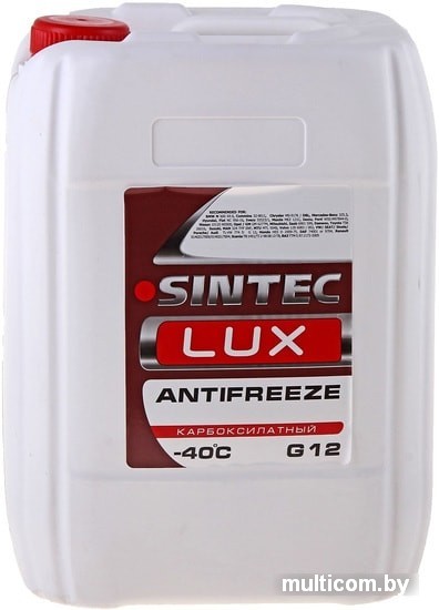 | Информация | Антифриз LUX предназначен для всех современных двигателей, подвергающихся высокой нагрузке, особенно алюминиевых. Антифриз LUX обеспечивает прекрасную защиту системы охлаждения от замерзания, коррозии и перегревания, эффективно защищает от образования отложений в охлаждающих каналах, в отсеке двигателя, в радиаторе и водяном насосе. С 2011 года антифриз SINTEC LUX G12 используется крупнейшим российским автопроизводителем ОАО «АВТОВАЗ» в качестве первой заливки на автомобили LADA, а также рекомендуется для применения при их эксплуатации и техническом обслуживании. Имеет допуски-одобрения от ОАО «АВТОВАЗ», VOLKSWAGEN, MAN, ОАО «КАМАЗ», ОАО «Тутаевский Моторный Завод», ОАО «АВТОДИЗЕЛЬ» (Ярославский моторный завод), «ФУЗО КАМАЗ Тракс Рус», ОАО «Минский моторный завод», «Группы ГАЗ». |