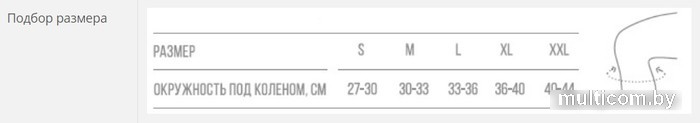 | Обхват колена | 27 — 30 см |