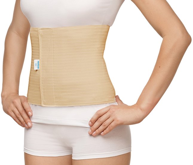 | Информация | Разгружает область послеоперационной раны, что способствует стабильности формирующегося послеоперационного рубца. Препятствует образованию и прогрессированию вентральных грыж. Уменьшает болевые ощущения, облегчает двигательный режим и раннюю мобилизацию. Показания Ранний реабилитационный период после оперативных вмешательств на органах брюшной стенки, в том числе, при абдоминопластике и липосакции. Вентральные вправимые грыжи. Реабилитационный период после кесарева сечения. Ранний послеродовый период. Особенности Разъемный. Удобен в использовании, фиксируется застежкой-«контакт». Изготовлен из плотного эластичного полиэфирного полотна. Степень фиксации — регулируемая. Создает равномерную эластическую компрессию, не препятствуя дыханию. Не вызывает аллергических реакций. |