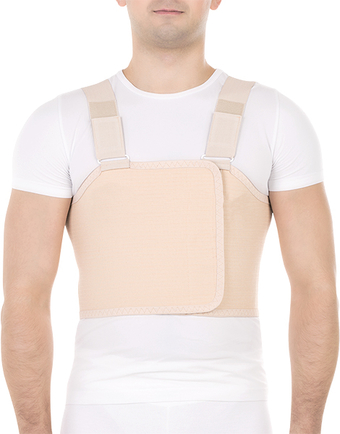 | Информация | Изготовлен из эластичного влаговпитывающего полотна с высоким содержанием хлопка, исключающего появление аллергических реакций. Бандаж имеет анатомическую форму, позволяющую оптимально разместить бандаж на грудной клетке мужчины, снабжен наплечными лямками для надежной фиксации бандажа на грудной клетке. Специальная вязка полотна обеспечивает отведение влаги с поверхности тела. Функции:обеспечение эластичной фиксации грудной клетки; уменьшение болей в области травмы, послеоперационной раны или рубца, в том числе болей при дыхании; оптимальные условия для заживления послеоперационной раны и формирования послеоперационных рубцов. Показания к применению:тупые и острые травмы грудной клетки; после операций на грудной клетке; межреберные невралгии и миозиты различной степени и локализации; профилактика перенапряжения мышц при физической нагрузке в послеоперационном периоде. Противопоказания к применению: абсолютных противопоказаний не выявлено. Относительные противопоказания, требуют консультации врача:синдром портальной гипертензии; наличие в области применения бандажа контактных дерматитов, трофических язв и пролежней; аллергическая реакция на материалы, из которых изготовлено изделие. |