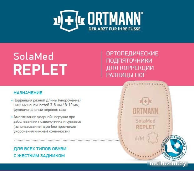 | Информация | Подпяточник для коррекции разной длины ног. Показания к применению:Коррекция разной длины (укорочение) нижних конечностей 8-12 мм, функциональный перекос таза Амортизация ударной нагрузки при заболеваниях позвоночника и суставов (использование пары без признаков укорочения нижней конечности) Тип обуви: для всех типов обуви с жестким задником. Способ применения: вкладываются в обувь, перед применением расшнуровать или ослабить/растегнуть пряжки фиксаторы обуви. Эффект:устраняют перекосы таза при укорочении нижней конечности (уравнивает длину ног при разнице 8-12 мм); повышают устойчивость при стоянии и ходьбе; уменьшают нагрузку на позвоночник, тазобедренные, коленные и голеностопные суставы; амортизация пяточного отдела: уменьшают ударную нагрузку на пятку и суставы ног при ходьбе; улучшают общее самочувствие. Противопоказания: Индивидуальная непереносимость материалов. Возможные последствия при использовании товара не по назначению не выявлены. По истечении срока службы товар не представляет опасности для потребителя и может быть утилизирован. Состав: натуральная кожа, вулканизированный латекс, клеевой фиксатор. |