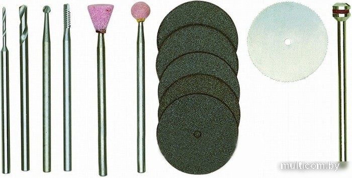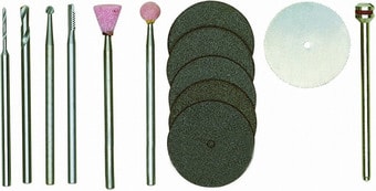 | Информация | Набор для гравера комбинированный PROXXON 13 предметов (28910) включает в себя: цилиндрическую и шаровидную фрезу, корундовую шаровидную и конусовидную фрезу, сверла диаметром 1, 2, 3,5 мм, отрезной диск диаметром 22 мм (5 штук), отрезной металлический диск диаметром 22 мм (использовать только с установкой защитного кожуха 28 944), а также держатель для насадок 2,35 мм. |