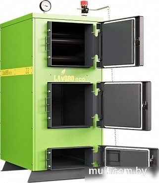 | Информация | - Котел Lavoro ECO серии K - это стальной водогрейный котел c дожигом пиролизного газа, предназначен для отопления помещений, оборудованных системами водяного отопления с естественной или принудительной циркуляцией, и горячего водоснабжения (ГВС). - Основным видом топлива данных котлов являются дрова и различные виды топливных брикетов, резервный вид топлива уголь. - Сталь топки 09Г2С, толщиной от 5 мм. |