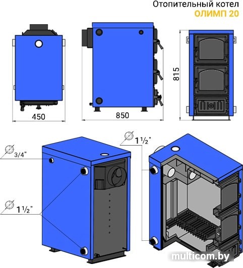 | Информация | Отопительный водогрейный котёл «Олимп» предназначен для теплоснабжения индивидуальных жилых домов и зданий коммунально-бытового назначения, оборудованных системами водяного отопления с естественной или принудительной циркуляцией, в открытых и закрытых системах отопления.Котлы изготавливаются в исполнении для умеренных и холодно-климатических зон. Устанавливаются котлы в закрытых помещениях с естественной вентиляцией без искусственно-регулируемых климатических условий.Работают на твердом топливе, угле и дровах.В котле предусмотрена возможность установки нагревательного элемента (блока ТЭН) устройства.Совок и кочерга в комплекте. |
