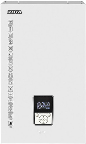 | Информация | ? Отопительный котел Zota MK-X 24 - это мини-котельная, объединяющая в себе тэновый электрокотел, контроллер, расширительный бак, циркуляционный насос и группу безопасности. ? Модельный ряд от 6 до 36 кВт с 3-9 ступенями мощности и информативным графическим дисплеем. ? Система самодиагностики неисправностей с выводом кодов ошибок на экран и возможностью обновления программного обеспечения. ? Управление по температуре теплоносителя и воздуха, погодозависимое регулирование, управление циркуляционным насосом и приводом трехходового клапана. ? Возможность дистанционного управления с мобильного телефона или компьютера, подключение внешнего термостата и ИБП. ?? Плавная регулировка температуры теплоносителя от +20 до +90°С и 6 уровней защиты для безопасной работы. ? Блоки ТЭН специальной конструкции, расширенный диапазон питающего напряжения, защита блока управления и возможность использования незамерзающих теплоносителей. ? Интеллектуальная система управления мощностью, теплоизоляция корпуса котла и встроенный хронотермостат для экономичной работы. |