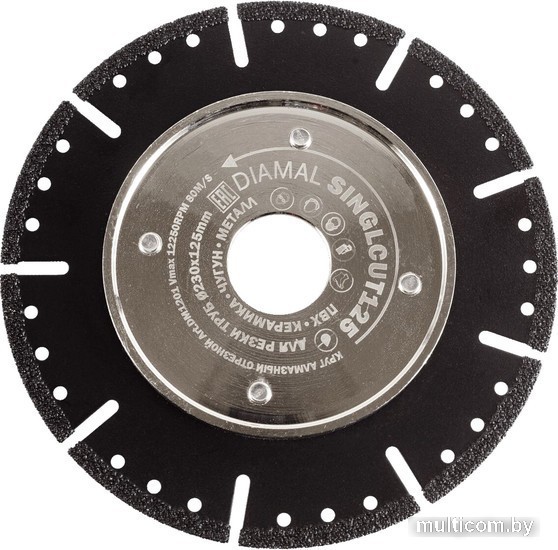 | Информация | SINGLCUT125 DIAMAL это алмазный диск 125 мм, предназначенный для резки канализационных, пластиковых, бетонных,чугунных и керамических труб. Благодаря своей специфической структуре он сочетает в себе два элемента. Один предназначен для резки, а другой для снятия фаски (обточки). |