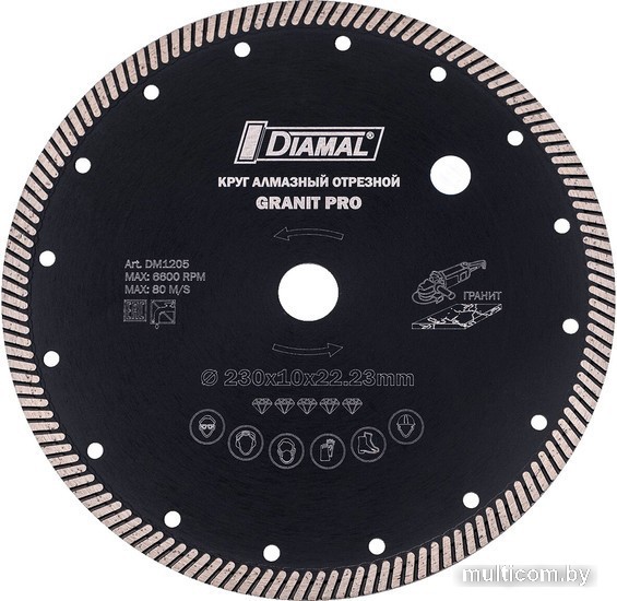 | Информация | Диск алмазный 230 мм DM1205 Диамал специально разработан для высокоэффективной работы с гранитом на всех типах болгарок и ручных УШМ. Круг серии GRANIT PRO работает без использования охлаждающей жидкости, имеет высокий ресурс и делает ровный рез без сколов. |