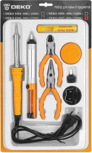 | Комплектация | паяльник - 1 шт.подставка под паяльник - 1 шт.экстрактор припоя - 1 шт.сменный наконечник экстрактора припоя - 1 шт.канифоль - 1 шт.припой спиралью - 1 шт.бокорезы - 1 шт.тонкогубцы - 1 шт. |