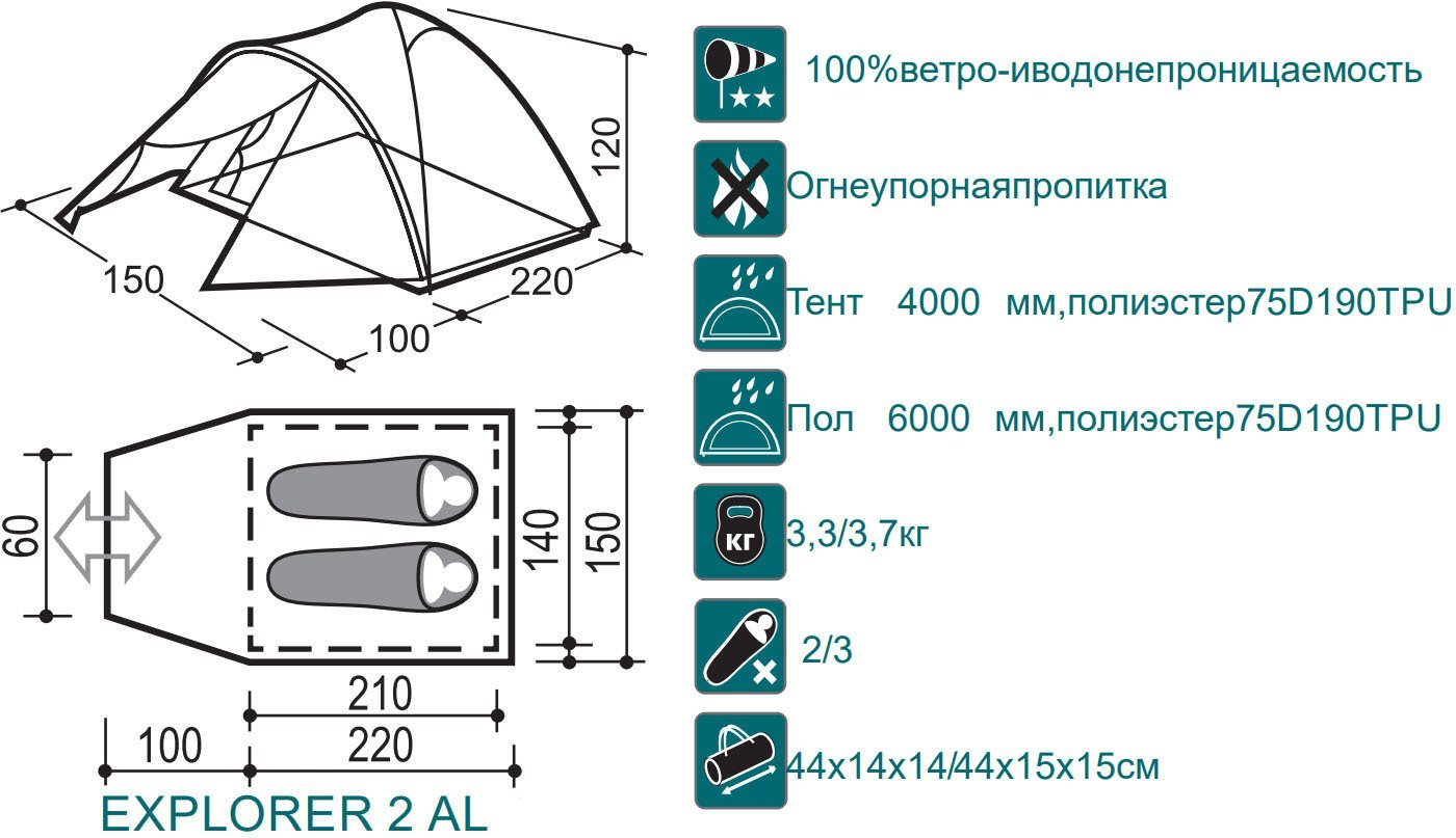 | Тент | двухслойный |