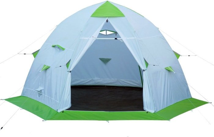 | Информация | Российские разработчики создали палатку «Лотос 5» для любителей зимней рыбалки. Это довольно высокое и объёмное изделие с «жилой» площадью 9 квадратных метров. В ней комфортно смогут рыбачить и проводить досуг до пяти взрослых человек в зимней одежде. Под зимнюю рыбалку палатка «Лотос 5» была модифицирована в 2017 году.Пол влагозащитный ЛОТОС 5У (ПУ4000) (крепится на тракторной молнии). |