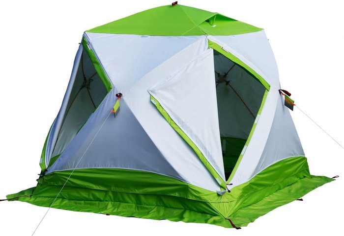 | Информация | ЛОТОС Куб 3 Компакт Термо является новинкой 2018 года, которая заменяет собой палатку 2017 года выпуска ЛОТОС Куб М2 Термо. Палатка оснащена каркасом высокой жесткости с системой компактного сложения, в которой применен принципиально-новый запатентованный гибкий фиксируемый узел. Дизайн палатки выполнен в бело-салатовом цветовом исполнении с использованием светопроводящих тканей. Палатка ЛОТОС Куб 3 Компакт Термо оснащена уникальным запатентованным тентом, который характеризуется повышенным показателем теплоизоляции и прочности. |