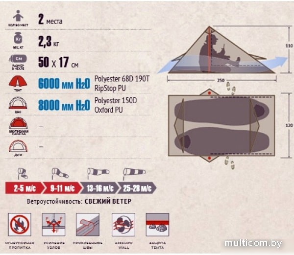 | Водостойкость тента | 6 000 мм вод. ст. |
