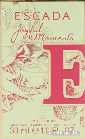 | Информация | Этот свежий фруктовый аромат подойдет женщинам, которые ценят каждый момент жизни и наслаждаются им, умеют наполнять свои дни радостью и счастьем.ESCADA Joyful Moments источает энергию яркого летнего утра: верхние фруктовые ноты звучат ароматом сочного щербета из черной смородины, сладкого личи и терпкого мандарина. Средние ноты раскрываются нежной композицией из дамасской розы и бутона розового пиона. Медовые соты и ваниль в базовых нотах придают аромату насыщенность и теплоту. |