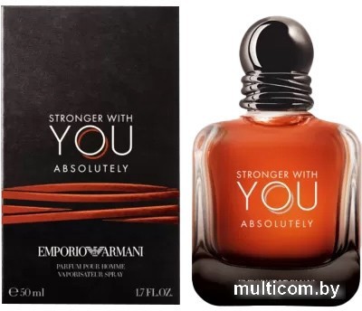 | Информация | ? Emporio Armani Stronger With You Absolutely Giorgio Armani is a fragrance for men that belongs to the oriental fougere group. This new edition, Emporio Armani Stronger With You Absolutely, was released in 2021. The top notes are Rum, Elemi, and Bergamot; middle notes include Lavender and Davana; base notes consist of Chestnut, Madagascar Vanilla, Cedar, and Patchouli. |