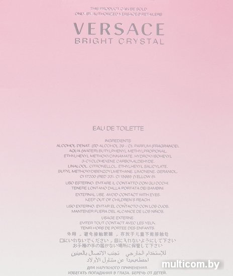 | Информация | Всепоглощающая страсть, кристальная прозрачность, яркое великолепие в новом аромате BRIGHT CRYSTAL.Это композиция редкой красоты с оттенками вибрирующих, изысканных цветочных нот. Роскошный и богато оформленный флакон нарочито простого силуэта с элегантной прозрачной крышкой, ограненной как бриллиант, усиливает притягательность деликатного содержимого. Верхние ноты: Гранат, Юзу, Ледяной аккордСредние ноты: Магнолия, Пион, ЛотосБазовые ноты: Красное дерево, Мускус, Амбра Роскошный, элегантный, утонченный, стильный, женственный, эффектный, сияющий, чарующий. |