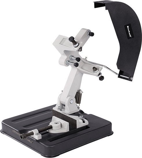 Информация | - Универсальное крепление для угловых шлифовальных машин; - Защитный кожух для безопасной работы; - Удобная ручка для ровного реза; - Тиски для надёжного крепления заготовки; - Массивное стальное основание для устойчивой работы; - Подходит для болгарок с диаметром круга 230 мм; - Угол наклона до 45 градусов, прорезиненная рукоятка; - Стойка позволяет использовать болгарку как отрезной станок. |