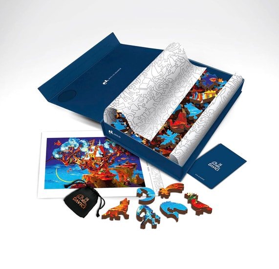 | Информация | Помимо стилизованных художественных деталей, пазл содержит секрет: разбросанные внутри картины элементы складываются в одну фигуру: Главное Здание-символ. Загадка - собрать раскиданные по картине части главного здания и сложить их в одну фигуру. |