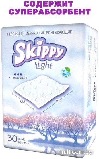 | Информация | Новая серия детских пеленок Skippy Light – это эконом линейка, отличающаяся очень хорошими характеристиками впитываемости и влагоудержания._x000D_ Тисненый (рифлёный) верхний слой увеличивает площадь соприкосновения влаги с пеленкой, результатом чего является моментальное впитывание попавшей на нее влаги, а суперабсорбент-полимер (SAP) превращает жидкость в гель, и надежно удерживает ее внутри. Нижний слой из матовой полиэтиленовой пленки, полностью исключает дальнейшее проникновения влаги. |