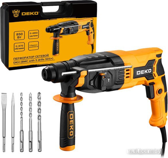 | Информация | ? Перфоратор DEKO DKH SET 080-1006 функционирует в трех режимах: сверление, ударное сверление, долбление. ? Переключение между режимами осуществляется при помощи тумблера сбоку на корпусе. ? Патрон SDS-plus обеспечивает быструю и легкую замену оснастки. ? Дополнительная рукоятка способствует уверенному удержанию инструмента в руках. ? Наличие кейса решает вопрос хранения и транспортировки перфоратора. |