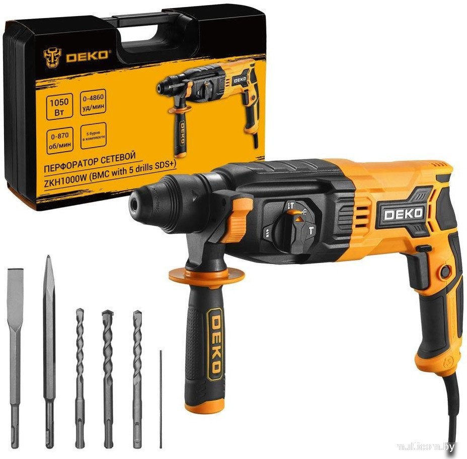 | Информация | Перфоратор сетевой DEKO ZKH1000W предназначен для сверления отверстий в различных материалах (дерево, бетон, кирпич, сталь и т.д. Перфоратор функционирует в трех режимах: сверление, ударное сверление, долбление. Переключение между ними осуществляется при помощи тумблера сбоку на корпусе. |