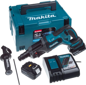 | Комплект поставки | 2 батареи BL1850 18v 5.0 Ah Li-Ion Зарядное устройство DC18RC Системный кейс MAKPAC Тип 3 Картридж для чемодана MAKPAC Боковая ручка Ограничитель глубины |