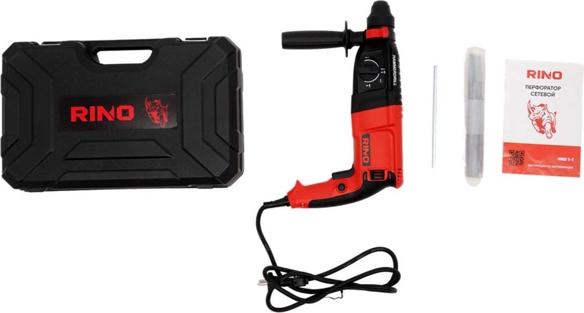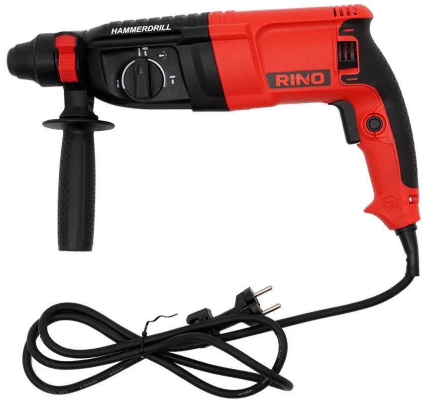 | Информация | - Сетевой перфоратор RINO — это универсальный ручной инструмент, работающий от электросети с напряжением 220 вольт. Он предназначен для вращения сверла или другого режущего инструмента, что позволяет сверлить отверстия и бурить твердые материалы, такие как камень, цемент и кирпич. - Инструмент предлагает 4 режима работы: - Сверление с ударом - Сверление без удара - Vario-lock — промежуточный режим, который позволяет фиксировать долото или лопатку в одной из 36 угловых позиций с шагом 10° - Режим бурения - Обратите внимание на режим Vario-lock, который не является основным, но предоставляет дополнительные возможности для фиксации инструмента. |