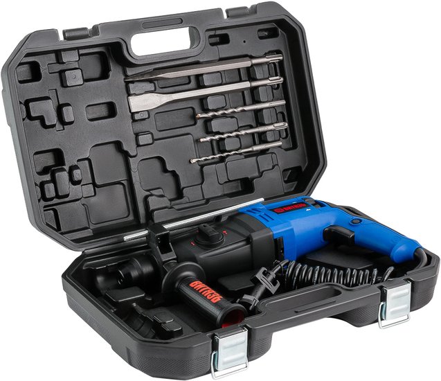Комплект поставки | - Кейс; - 3 SDS+ бура 8/10/12/ 150 мм; - Пика; - Зубило |