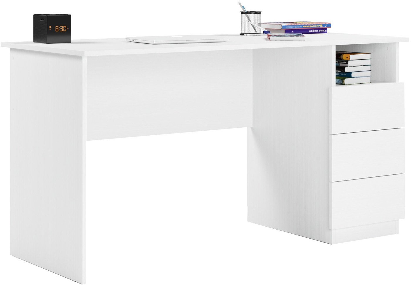 | Информация | - Удобный письменный стол идеально подойдет для дома, офиса или квартиры. - Полноценные габаритные размеры стола позволяют комфортно разместить письменные принадлежности и уютно чувствовать себя при работе. - Стол имеет лаконичный дизайн и легко впишется в интерьер любого помещения. - Стол состоит из двух вертикальных боковых стенок, соединенных щитом жесткости и крышкой прямоугольной формы. - Под столешницей расположена ниша для хранения и три выдвижных ящика на роликовых направляющих. - В комплект входит настенная полка. - Обратите внимание! Стол может быть собран в левом и правом исполнении. |