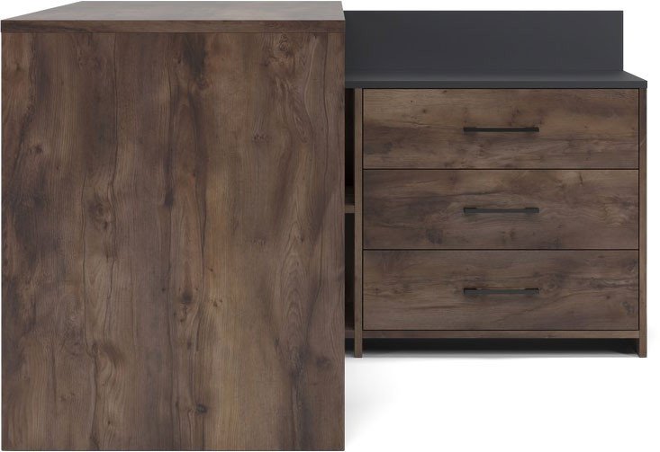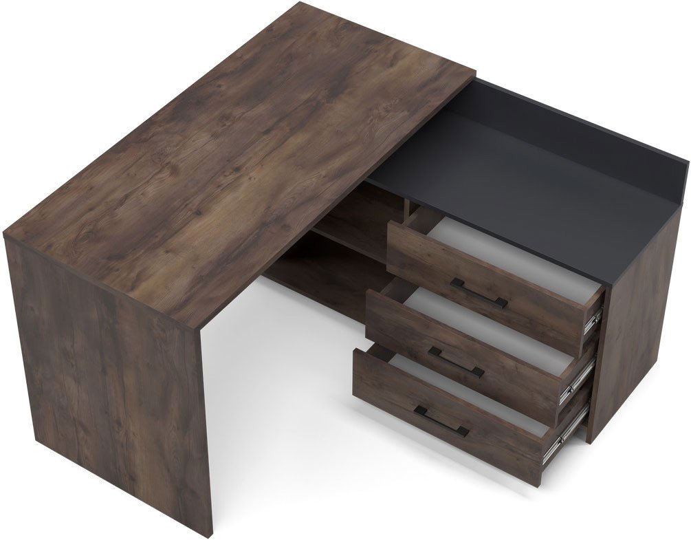 | Информация | - Угловой письменный стол Кросс ИВ-120.01 идеально подходит для подростковой комнаты, домашнего кабинета и офиса. - Продуманная конструкция включает две поверхности для размещения техники и подручных предметов, несколько открытых ниш и три выдвижных ящика для удобной системы хранения книг, бумаг и канцелярских принадлежностей. - Стол может быть собран в левом и правом исполнении. |