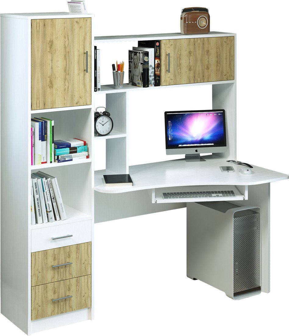 | Информация | - Компьютерный стол Комфорт-10 - современный и практичный, идеальный для работы и учебы. - В столе есть просторная столешница, выкатная полка для клавиатуры и ниша под системный блок. - Пенал для документов и книг с открытыми нишами сверху и выдвижными ящиками снизу - одно из преимуществ модели. - Надстройка стола имеет открытые полки и ниши, а также закрытый шкафчик. - Компьютерный стол Комфорт-10 - отличный помощник в работе и учебе. |