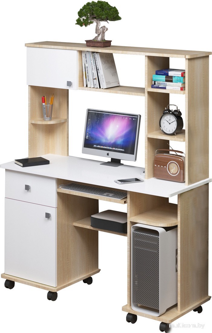 | Информация | - Простой и функциональный компьютерный стол идеально подходит для работы и учебы. - Открытые полки предназначены для хранения документов, а ниши - для дополнительной оргтехники. - Вместительный ящик и закрытое отделение с полками предназначены для хранения личных вещей. |