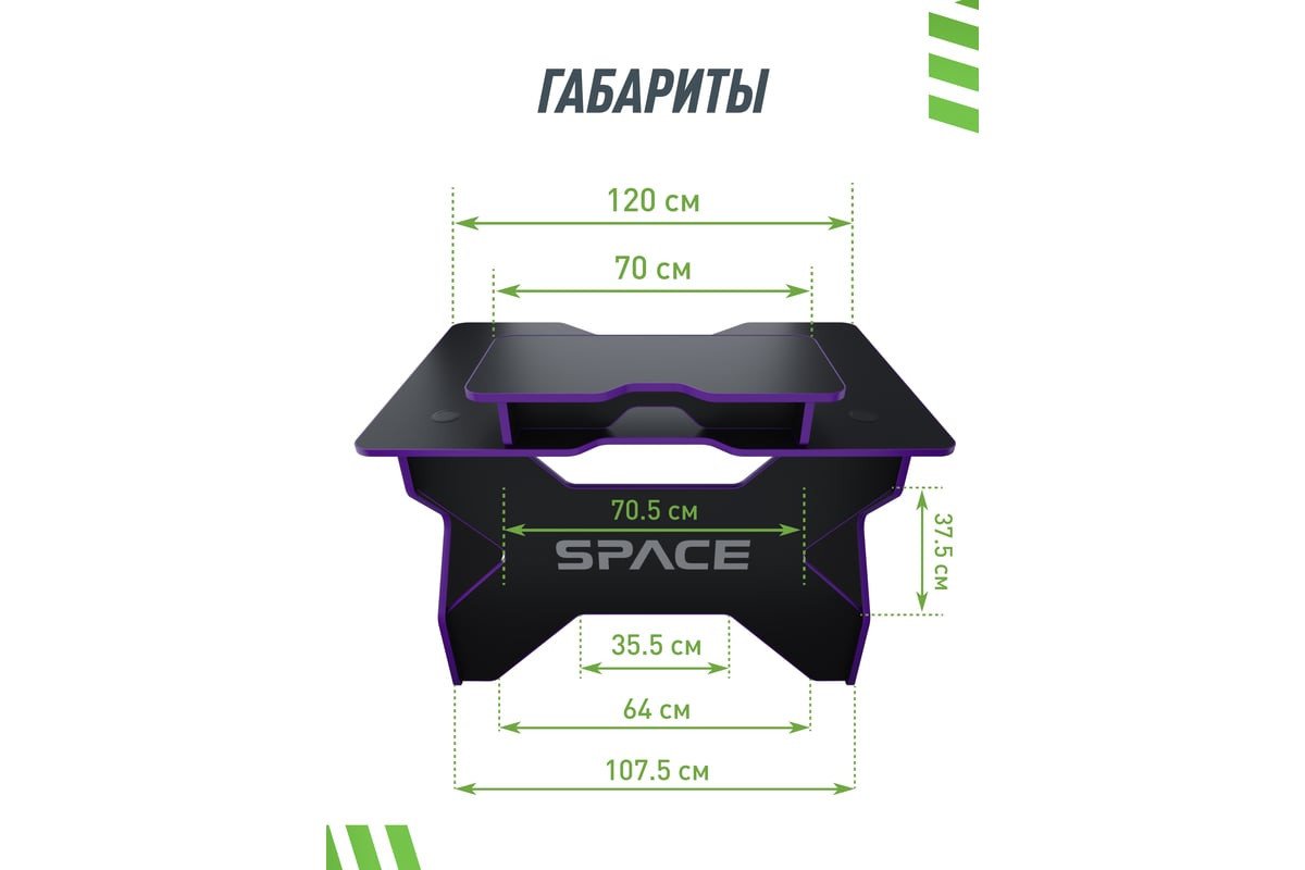 | Информация | Игровой геймерский стол с подставкой для монитора SPACE 120 DARK пурпурный BASE ST-1-BS-1-BPU-120SET |