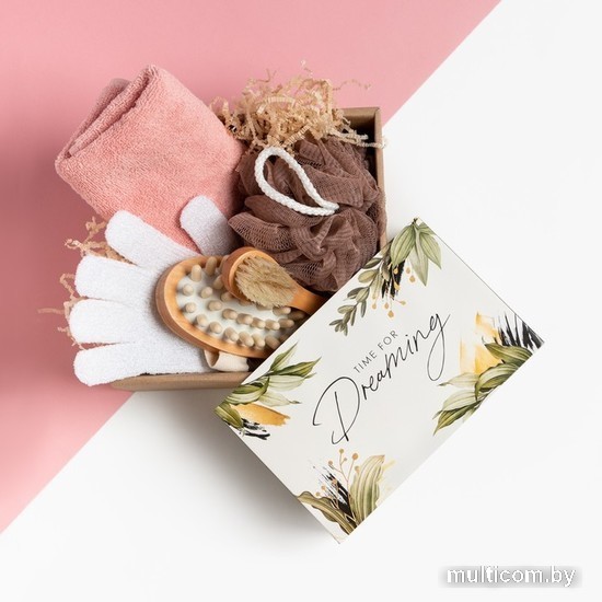 на любой праздник для женщины, содержание набора: варежка-мочалка, массажёр, мочалка, полотенце, щётка