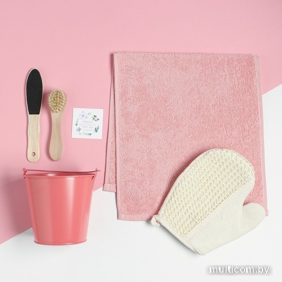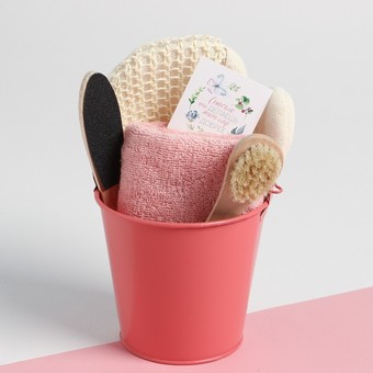 | Содержание набора | варежка-мочалка, ведёрко, открытка, полотенце, тёрка для ног |