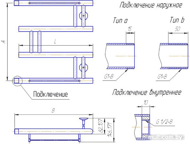| Подключение | боковое |