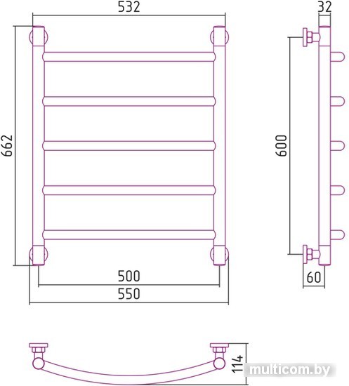 | Посадочное (межосевое) расстояние | 500 мм (- при нижнем подключении, при диагональном и вертикальном - 600 мм) |