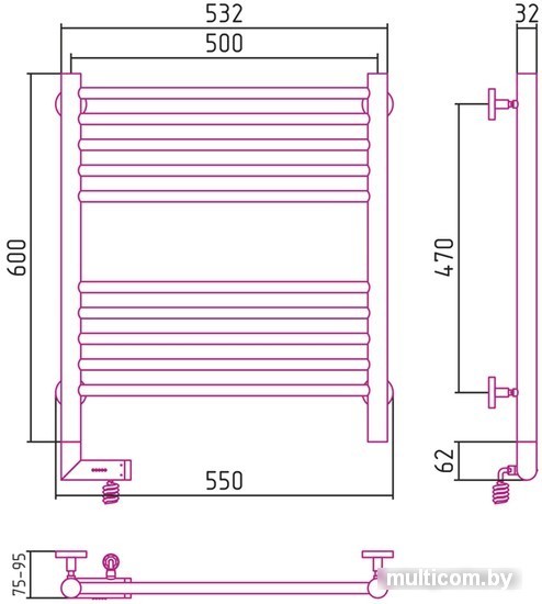 | Комплектация | Полотенцесушитель - 1 шт;Кронштейн телескопический - 4 шт;Ключ ШГ №2,5 - 1 шт;Паспорт - 1 шт. |