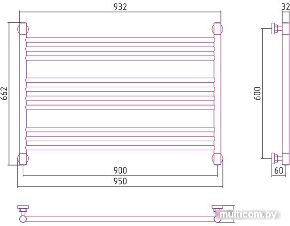 | Посадочное (межосевое) расстояние | 900 мм (- при нижнем подключении, при диагональном и вертикальном - 600 мм) |