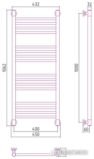 | Информация | межосевое расстояние при вертикальном подключении 1000 мм; межосевое расстояние при диагональном подключении 1000 мм в параметрах указано межосевое расстояние при нижнем подключении |