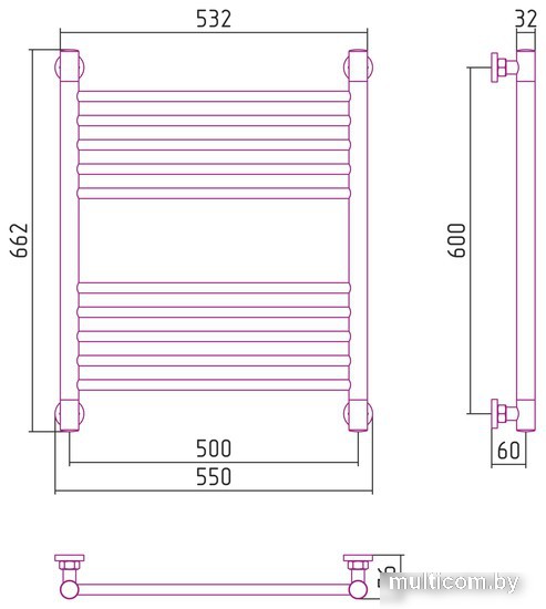 | Информация | Водяные полотенцесушители Богема+ имеют широчайшую линейки размеров от 500х300мм, до 1900х800мм. Так что помещение любых размеров, не останется без качественного и надежного отопительного прибора.Это новейший полотенцесушитель разработанный с нуля в конструкторском бюро компании Сунержа в г. Санкт-Петербург.Гарантия на дизайн-радиатор - 10 лет, все что нужно для монтажа уже в комплекте. Доставка по России - бесплатно! Межосевое расстояние: ?- нижнее подключение X (мм) 500 ?- диагональное подключение Y (мм) 600 ?- вертикальное подключение Y (мм) 600 Внешние габариты (высота х ширина х глубина) (мм) 662х550x76 Подключение Универсальное Материал Нержавеющая сталь AISI 304 L (04X18H10) Площадь помещения (м?) 3.6 Объем помещения (м?) 9 Теплоотдача (Qвт) 357 Рабочее давление от 3 до 15 атм Давление испытаний 60 атм Температура теплоносителя до 105°С Масса (кг) 6 Объем (м?) 0.016 Дизайн-радиатор с применением технологии «ПолимерПротект». межосевое расстояние при вертикальном подключении 600 мм; межосевое расстояние при диагональном подключении 600 мм в параметрах указано межосевое расстояние при нижнем подключении |