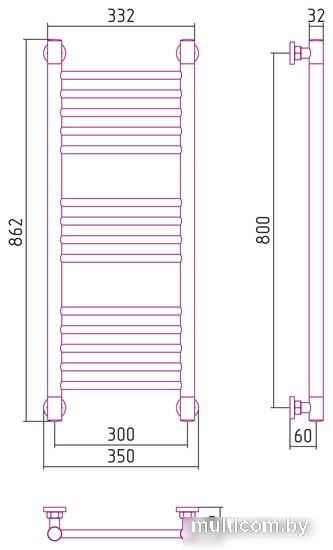 | Информация | межосевое расстояние при вертикальном подключении 800 мм; межосевое расстояние при диагональном подключении 800 мм в параметрах указано межосевое расстояние при нижнем подключении |