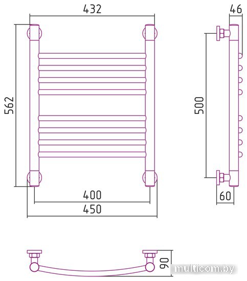| Информация | Водяной полотенцесушитель Богема+ 500x400 (выгнутая) Сунержа, 00-0221-5040 ХРОМ (без покрытия). Этот дизайн-радиатор органично впишется в современный интерьер и, безусловно, порадует Вас современным дизайном и великолепной функциональностью. Полная комплектация, все элементы выполнены из нержавейки, горизонтальные перемычки чуть выгнуты вперед, выход с полотенцесушителя 3/4 дюйма накидная гайка (американка). Гарантия 10 лет. Межосевое расстояние: ?- нижнее подключение X (мм) 400 ?- диагональное подключение Y (мм) 500 ?- вертикальное подключение Y (мм) 500 Внешние габариты (высота х ширина х глубина) (мм) 562х450x76; Подключение Универсальное; Материал Нержавеющая сталь AISI 304 L (04X18H10); Площадь помещения (м?) 2.5; Объем помещения (м?) 6.1; Теплоотдача (Qвт) 243; Рабочее давление от 3 до 15 атм; Давление испытаний 60 атм; Температура теплоносителя до 105°С; Масса (кг) 4.7; Объем (м?) 0.011; Дизайн-радиатор с применением технологии «ПолимерПротект». На главную межосевое расстояние при вертикальном подключении 500 мм; межосевое расстояние при диагональном подключении 500 мм в параметрах указано межосевое расстояние при нижнем подключении |