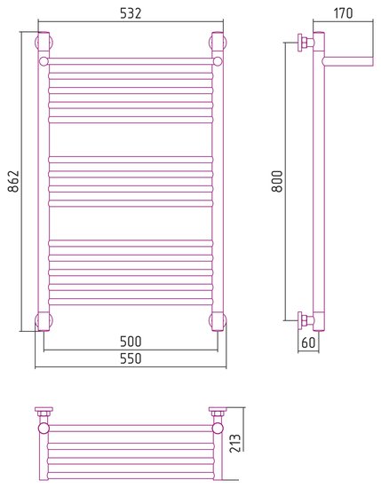 | Информация | межосевое расстояние при вертикальном подключении 800 мм; межосевое расстояние при диагональном подключении 800 мм в параметрах указано межосевое расстояние при нижнем подключении |