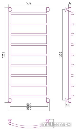 | Информация | межосевое расстояние при вертикальном подключении 1200 мм; межосевое расстояние при диагональном подключении 1200 мм в параметрах указано межосевое расстояние при нижнем подключении |