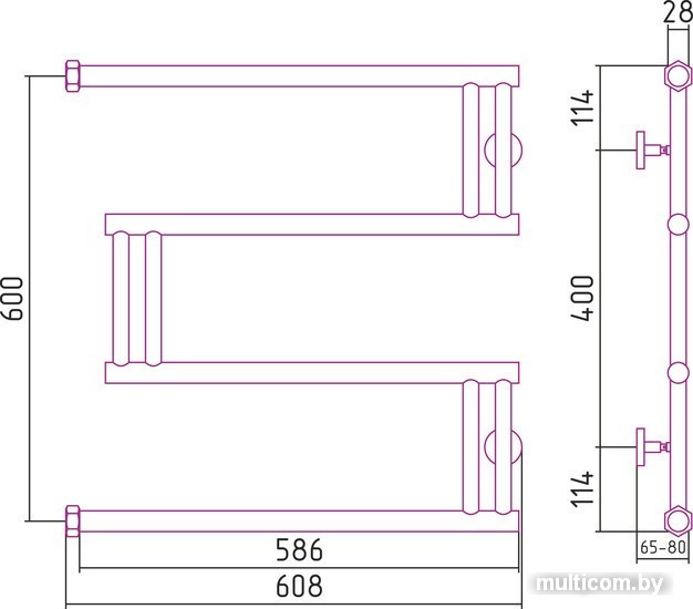| Посадочное (межосевое) расстояние | 600 мм |